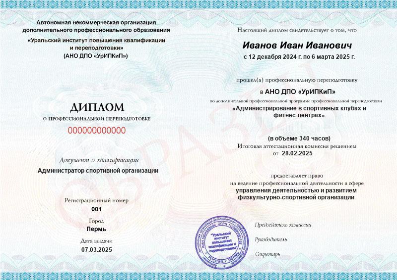 Квалификация: Администратор спортивной организации
