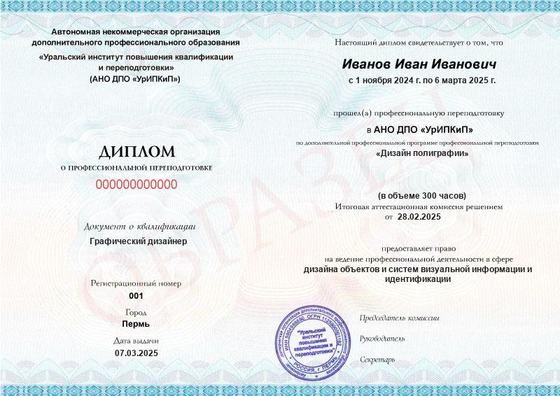 Да, дипломы и удостоверения оформляются в соответствии с действующим законодательством РФ. Документы печатаются на специальных бланках, заверяются печатью АНО ДПО «УрИПКиП».
