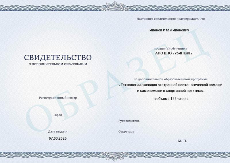 Технологии оказания экстренной психологической помощи и самопомощи в спортивной практике (144ч)