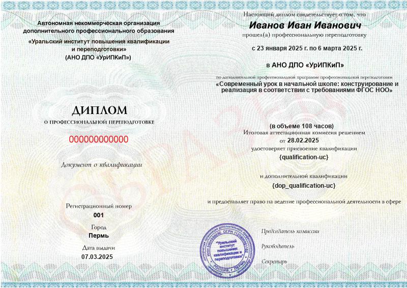Квалификация: Учитель начальных классов
